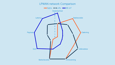 There are many parameters you can compare networks based on. We have selected 9 factors that we believe are essential when working with IoT and choosing the right LPWAN technology. The factors are: Scalability, Reach, Coverage, Deployment, Cost, Efficiency, Battery Life, QoS, Payload and Latency.