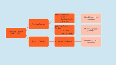 Statistical Quality Control (SQC) ensures that each output meets customer specifications the processes and the products. SQC can be divided into three categories: descriptive statistics, statistical process control (SPC) and acceptance sampling as depicted in figure 4.