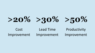 When companies optimize their processes and focus on continuous improvements and their people, the company enables the possibility of benefitting on multiple parameters such as financial impact, productivity impact and effectiveness impact. We usually experience that companies will reduce cost by more than 20% and improve lead-times and productivity with respectively more than 30% and 50% in specific areas of their operation.