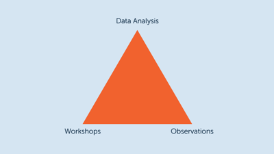 Det første skridt til at skabe et bæredygtigt og optimeret procesdesign er at forstå virksomhedens processer og den menneskelige interaktion/adfærd. For at kunne skabe denne indsigt, er det en fordel at bruge metodetriangulering. Metoden anvender mere end én metode til dataindsamling om ét emne, hvilket sikre at forskellige dimensioner af den samme opsætning og det samme system bliver identificeret. Ydermere, sikrer metoden også krydsvalidering af dataindsamlingen, så man sikre korrekt kortlægning. For at opnå et nøjagtigt procesflow anbefales det at bruge de tre datametoder, der er vist i figuren nedenfor. Hvis man udelader en af disse metoder, resulterer det i en unøjagtig kortlægning af procesflowet, hvilket vanskeliggør implementeringen af ændringer og forbedringer.